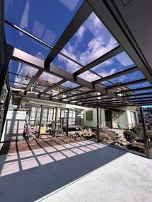 離れを解体し、駐車場を拡張するとともにガレージシャッターを新設しました。