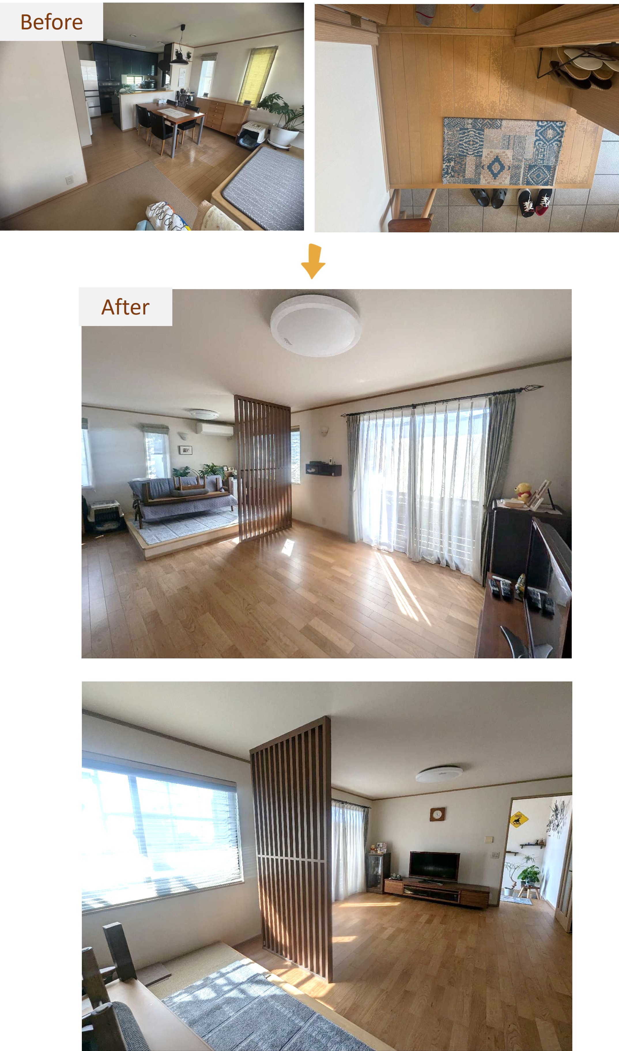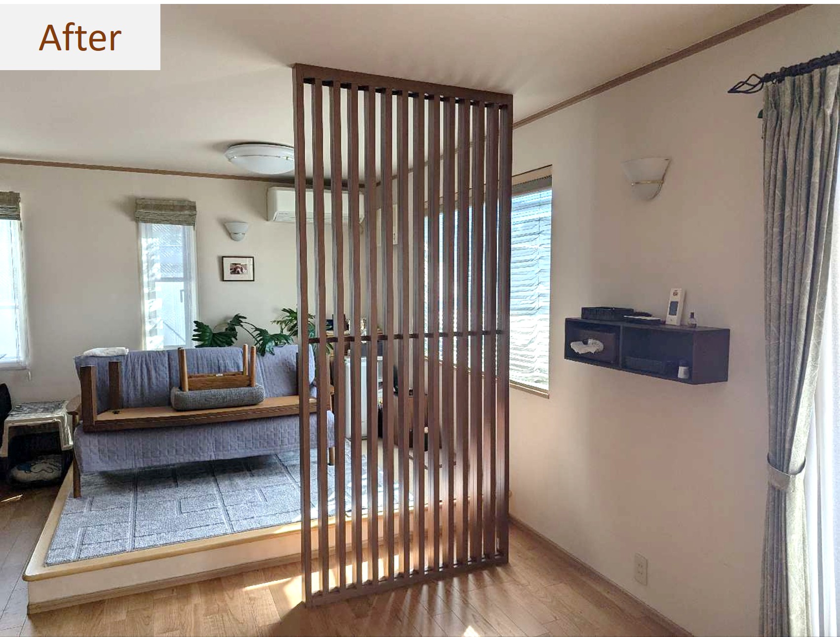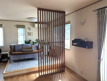 空間を優しく仕切りつつ、縦格子の隙間から光や気配が通うインテリアを演出できます✨