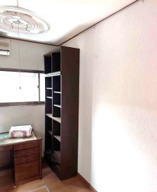 キッチン北側に面する洋室の一部が出っ張っており、食器棚を設置するとキッチンスペースが