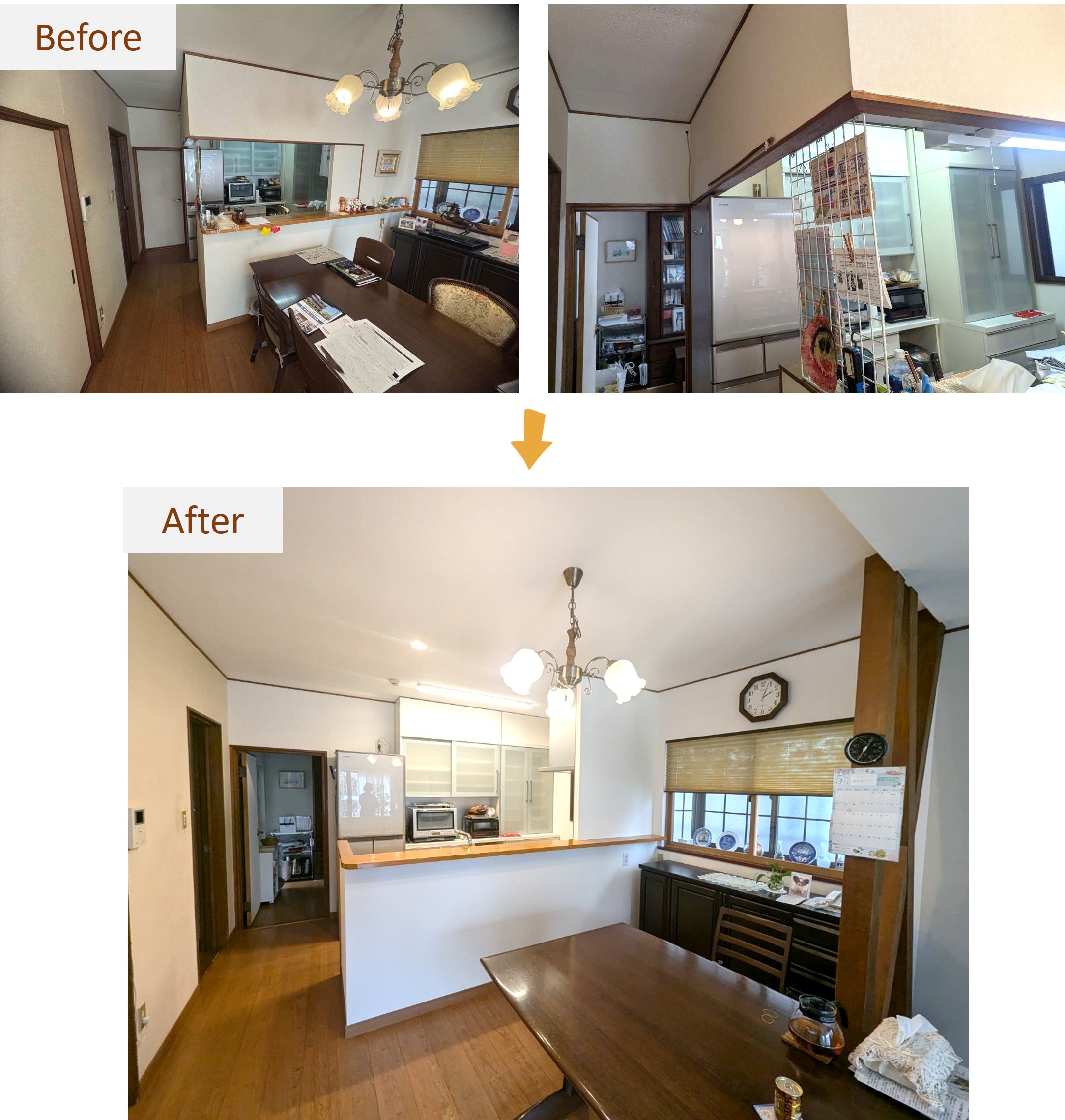 日進市O様邸 キッチンの壁を撤去し、明るく開放的なオープンキッチン空間にリフォームしました。
