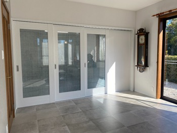 床は既存のフローリングの上からフロアタイルを上貼りしました。