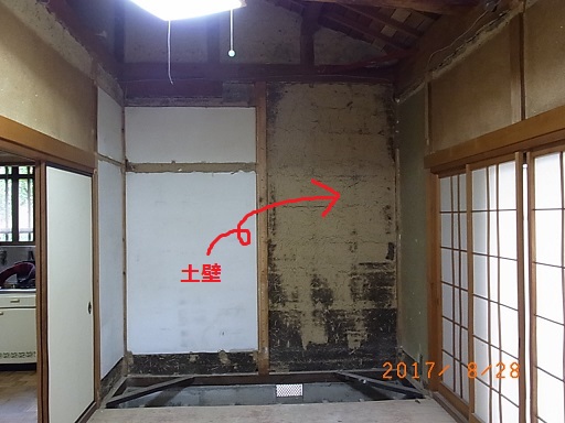 今回は土壁のお家ですが、なるべく土壁を傷めないように残す方法で改修を進めています。
