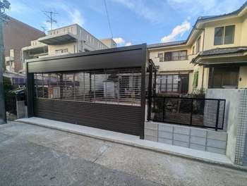 離れを解体し、駐車場を拡張するとともにガレージシャッターを新設しました。