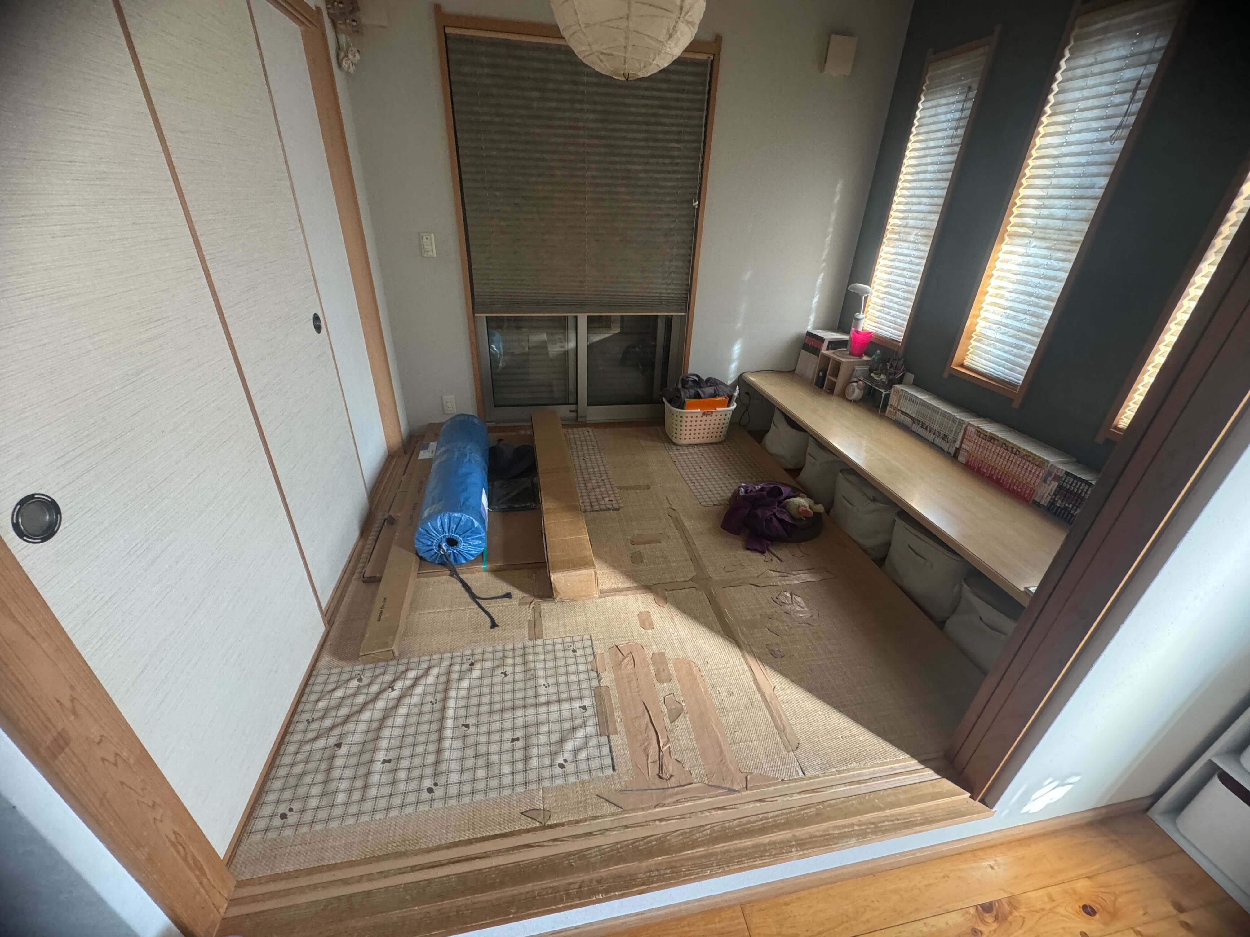 既存の畳と合板を剥がして、新しい合板を張って、新しい畳を置いていきます。