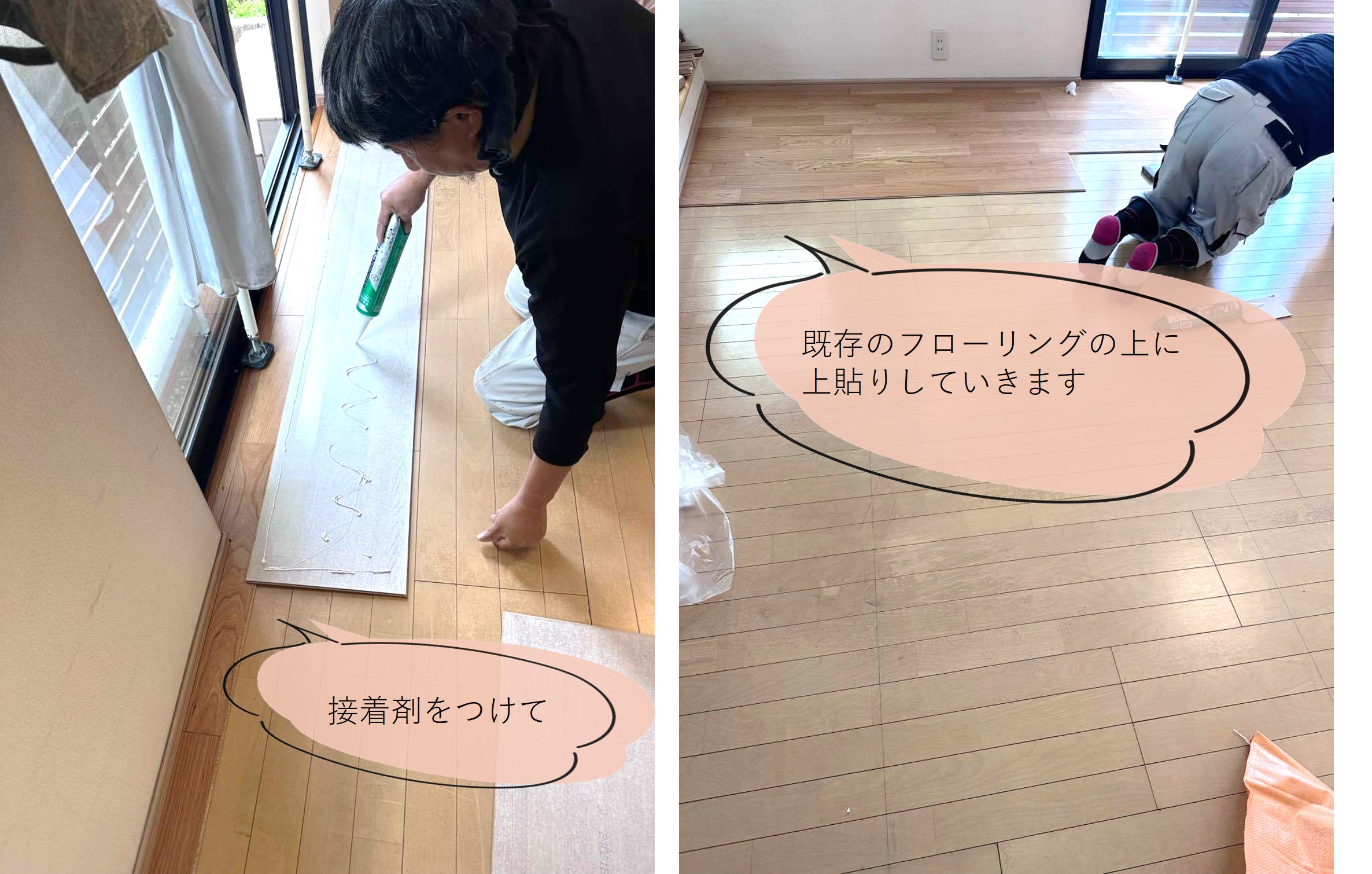 リフォーム工事で床材を上貼りする工法はメリットがたくさんあります!!