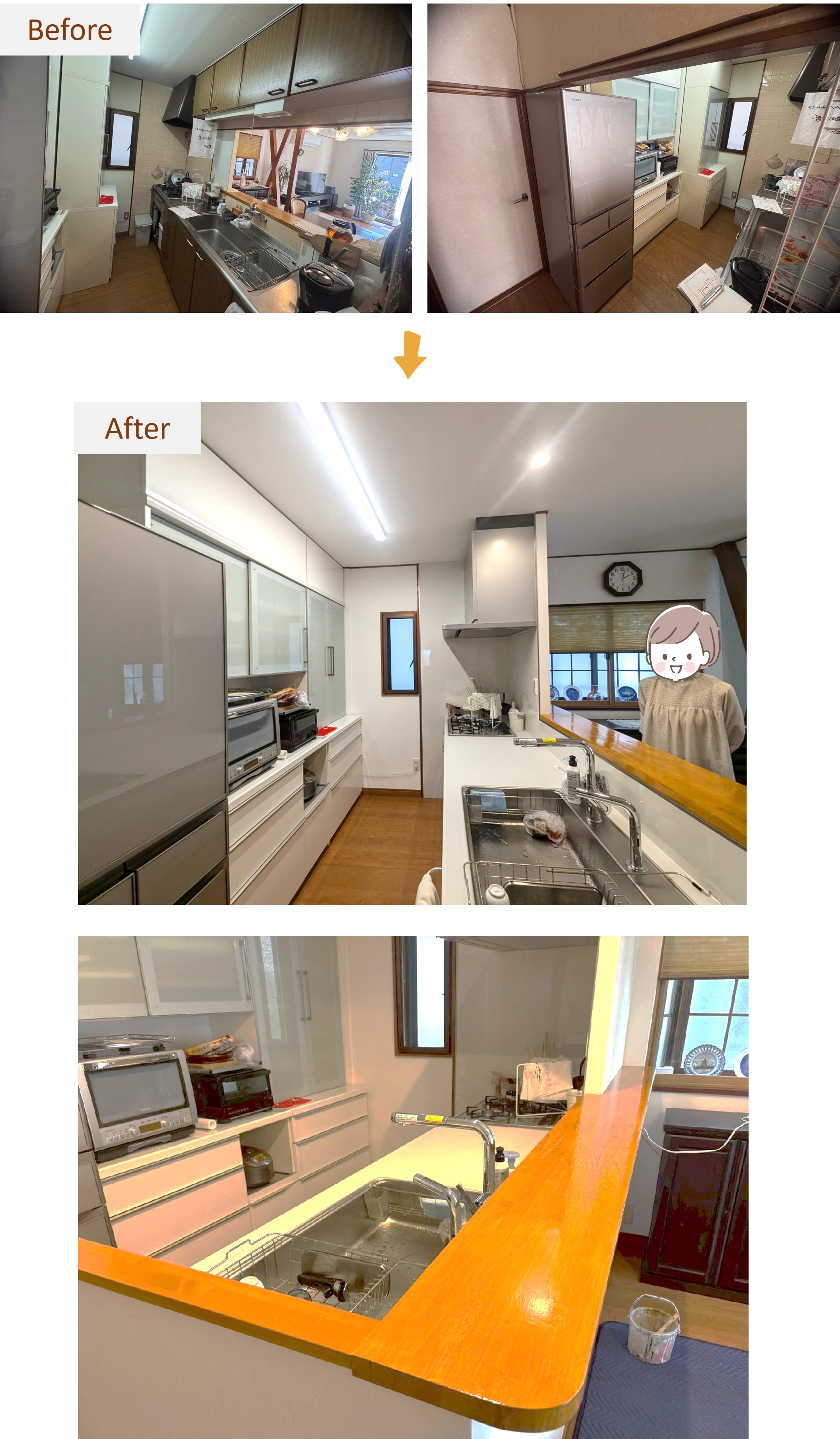 食器棚がきれいに収まり、キッチンスペースも広がって、より使いやすくなりました。