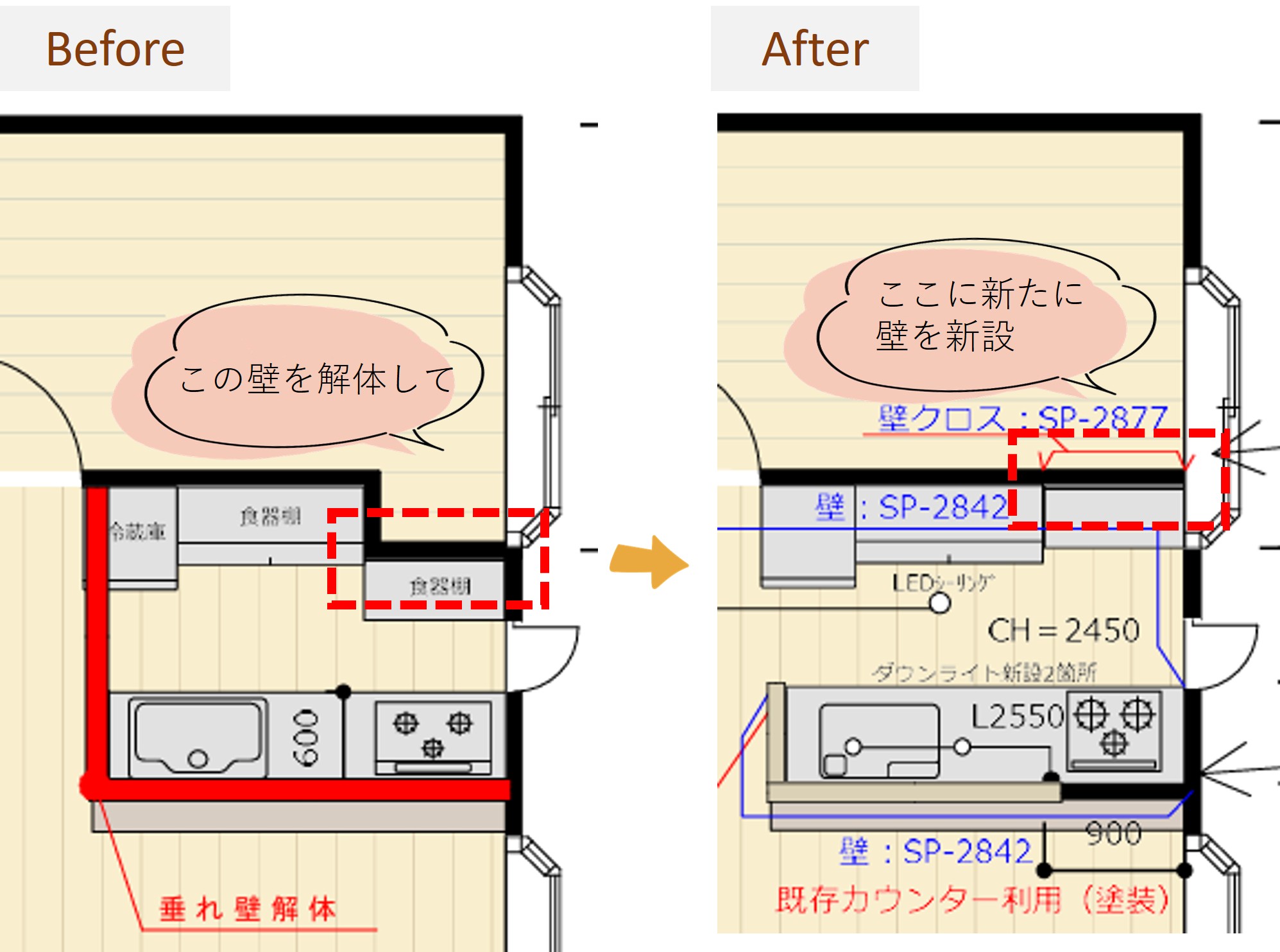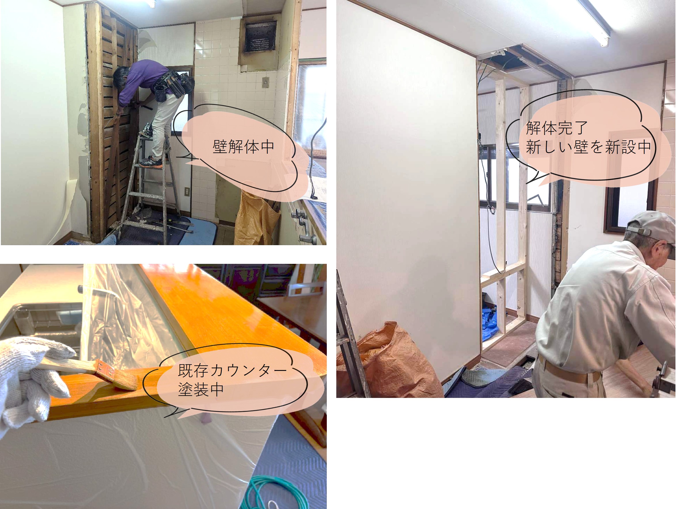 そこで、出っ張っていた壁を解体し、壁がフラットになるよう新たに壁を新設しました。