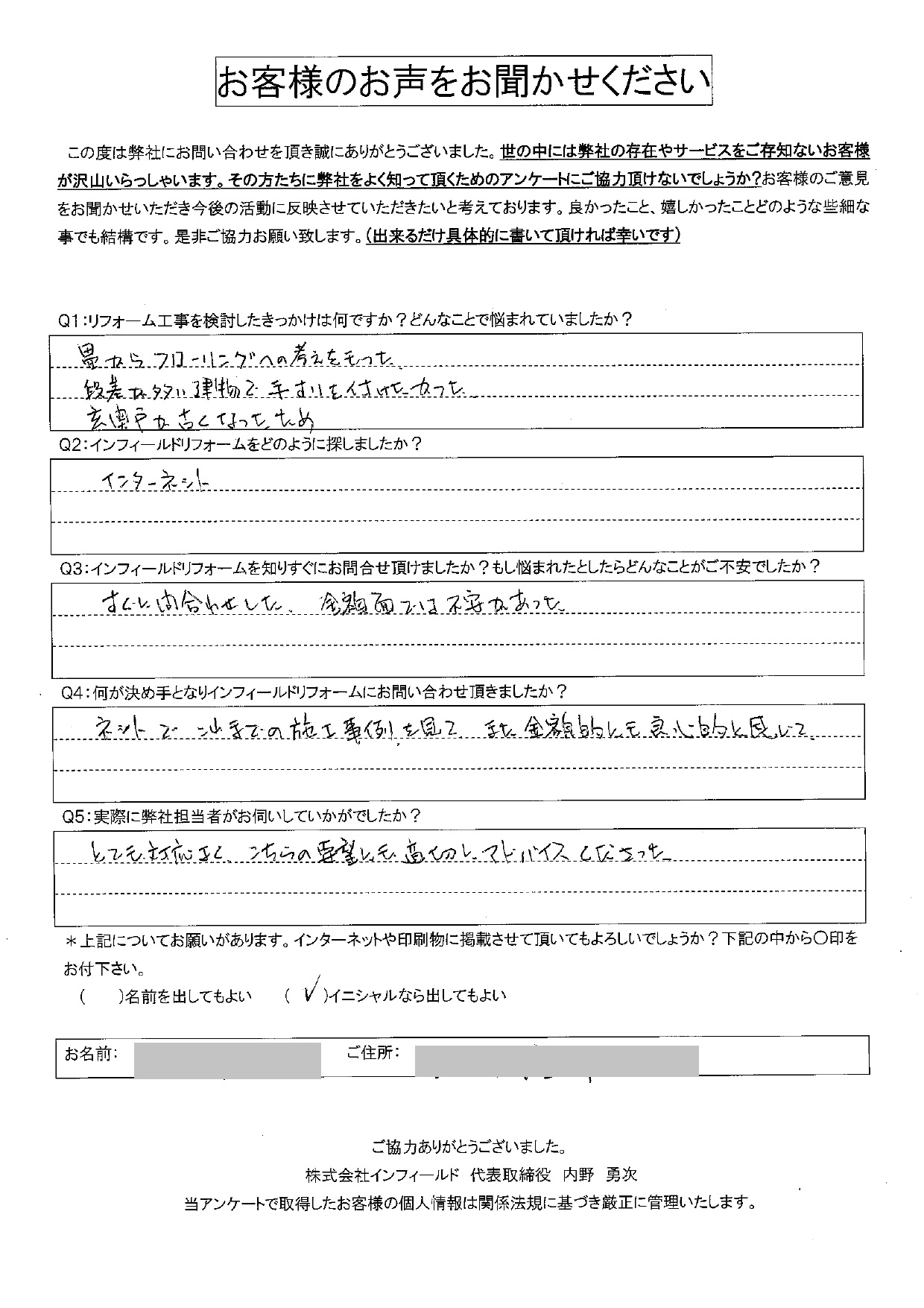 ネットでこれまでの施工事例を見て、また金額的にも良心的と感じて